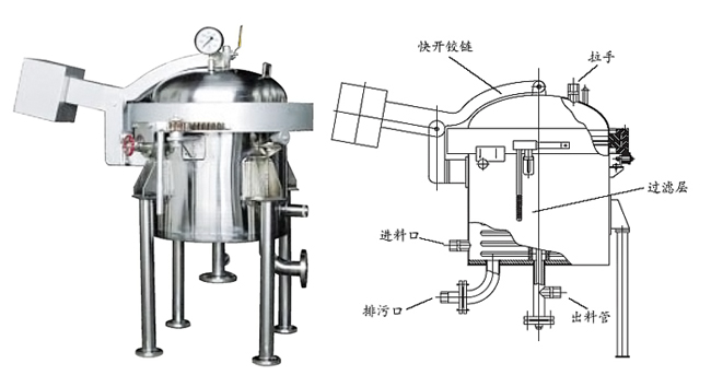 快開式壓濾機(jī)系間歇人工操作設(shè)備,具有結(jié)構(gòu)緊湊、密封性好、效率高、拆裝方便、勞動(dòng)強(qiáng)度低等優(yōu)點(diǎn)。